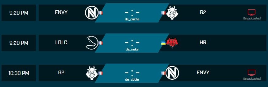 La troisième équipe française de la compétition, les LDLC, entame également leur tournoi ce jeudi face aux HR (21h20)