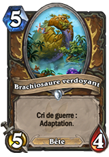 Brachiosaure verdoyant est une Bête 5/4 coutant 5 cristaux. Elle a la capacité de s’adapter. C’est une carte commune pour les Druides coutant 40 poussières.