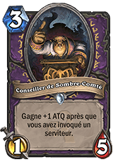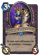 Chef de gang des diablotins (x2) est une 2/4 pour 3 de mana qui une fois blessée permettra d’invoquer un diablotin 1/1. C’est une carte difficile à gérer pour votre adversaire. Le Conseiller de Sombre-Comté (x2) est une carte MONSTRUEUSE. C’est une carte 1/5 qui coûte 3 de mana, mais qui chaque fois que vous invoquerez un serviteur gagnera 1 d’attaque. Il peut être intéressant de la combiner avec Rituel Interdit. Le Golem d’argenterie (x2) est un serviteur classique mais qui sera invoqué gratuitement sur le plateau si vous le défaussez avec Feu de l’âme par exemple.
