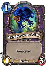 Les serviteurs en ce début de partie sont au nombre de huit. Tout d’abord le Diablotin des flammes (x2), une 3/2 pour 1 de mana, qui vous permettra de rapidement mettre la pression à votre adversaire. Son défaut est qu’elle vous coûte 3 points de vie lorsque vous l’utilisez. Le Marcheur du vide (x2) est une provocation 1/3 qui vous permettra de protéger vos créatures importantes de la mort. Le Villageois possédé (x2) qui n’est qu’une carte 1/1, reviendra sur le plateau de jeu une fois tué en 1/1 de façon à assurer une présence et qui vous permettra d’aller chercher rapidement de petits serviteurs tout en gardant l’avantage.