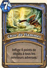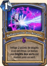 L’Explosion des Arcanes (x1) permettra de cibler un board adverse faible en début de partie alors que l’utilisation de Choc de flammes (x1) permettra d’infliger d’énormes dégâts (4) à l’ensemble du board adverse