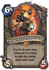 Deux cartes sont importantes dans ce milieu de partie: l’Élémentaire d’eau (x1), carte très forte qui permet de geler un adversaire ou une créature avec un énorme pull PV et l’Empereur Thaurissan (x1) afin de réduire le coût de votre main après avoir joué par exemple un Grimoire de cabaliste qui vous donnera peut être 3 Boules de feu.