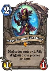 Comme dit en introduction, le deck se compose de nombreuses cartes permettant de piocher. Tout d’abord avec la présence de cartes qui en plus de permettre la pioche, permettent également de poser des créatures. C’est le cas du Grimoire bavard (x2), du Drake azur (x2) et du Mage de sang Thalnos (x1)