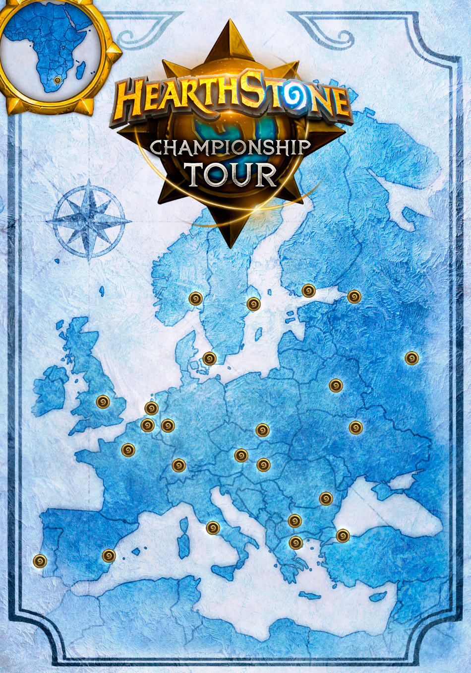 Pour les fans et curieux, ces tournois se dérouleront et seront diffusés en direct à travers toute l’Europe, mais également au sud de l’Afrique. Découvrez la liste et la carte des 25 lieux officiels ci-dessous. Et si vous n’avez pas la chance de vous y rendre, la chaîne Hearthstone retransmettra le direct via la plateforme Twitch.