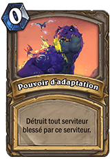 Si ce concept vous êtes inconnu, nous vous redirigeons vers l’article de présentation de l’extension. En guise de résumé, cette mécanique permet aux joueurs de choisir trois améliorations pour la carte qu’il vient de poser si elle possède la caractéristique nécessaire. Ainsi, parmi les cartes que nous connaissons, seul le Gros dinosaure doux et le Brachiosaure verdoyant possède la compétence d’adaptation, la première apportant même une amélioration à tous vos murlocs. (Si vous souhaitez en savoir plus sur ces deux bêtes, c’est par ici).