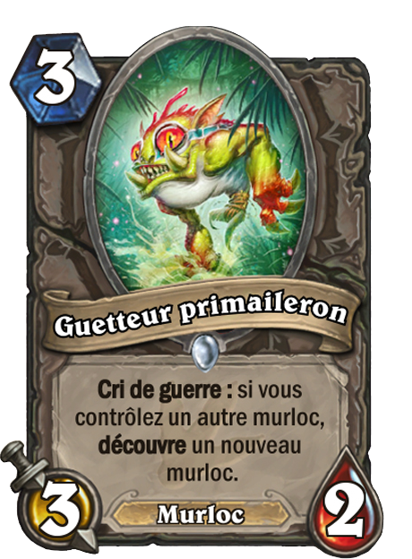 Primalfin Lookout est un Murloc neutre 3/2 pour 3 de mana qui découvre un autre Murloc si vous en possédez déjà un sur le plateau de jeu.