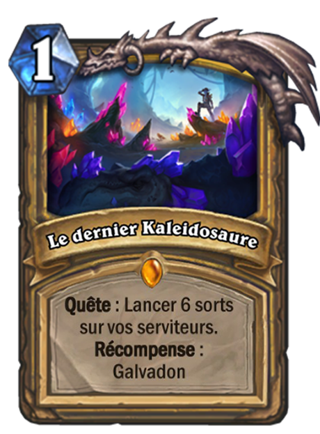 C’est cette fois le compte Twitter d’Hearthhead qui vient d’annoncer la tant attendue quête du Paladin. The Last Kaleidosaure vous permet après avoir utilisé 6 sorts sur vos serviteurs d’obtenir Galvadon. Galvadon une fois joué subit alors 5 adaptation.