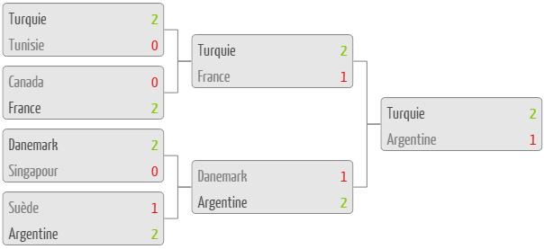 Cette année, après des phases de qualification, huit équipes étaient sélectionnées pour la phase finale de ce World Championship 2016. On y retrouvait donc les équipes suivantes: France, Danemark, Suède, Turquie, Canada, Tunisie, Singapour et Argentine. La phase finale était tout d’abord composée d’une poule unique les 6 et 7 octobre où toutes les équipes se sont affrontées une à une en BO1. En fonction du classement final, dont la Turquie est sortie première avec 7 victoires en autant de matchs, les 1/4 de finale pouvaient alors être annoncés.
